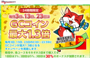 こちらには3の付く日最大1.3倍キャンペーンがあります。