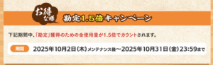 しかし、2枚目以降(勘定ポイント101以降)の場合、すべての金消費を勘定ポイント1.5倍キャンペーンに合わせる事が可能と思われます。