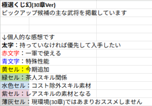 【極選くじ幻 30章】おススメ ラインナップ候補(極・特)