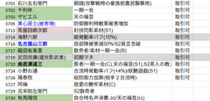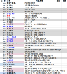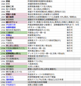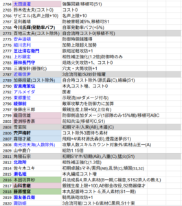 上記の表で、自合流時コスト除外スキル(踏み倒しとも呼ばれる)の素材となる武将はセルを水色にしています。