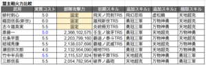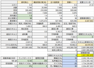 最後に、火力比較に用いた表ですが、数値の信ぴょう性を高める為に素攻撃力・スキル上昇率・総攻上昇率を加えたものを下に貼っておきます。