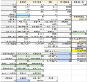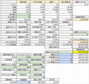 部隊火力の期待値(=最大値)は853,527,052 (約8.53億)となりました。