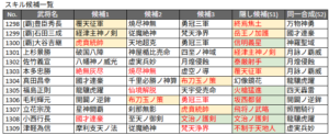 黄色セルは「新登場のスキル」、緑セルは「初期スキルの移植」、赤文字は「おススメの追加候補」となっています。