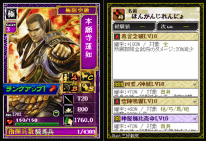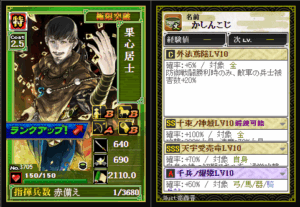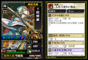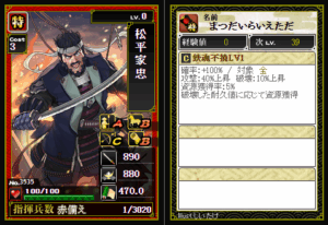 この武将に自マネを1つ付けて部隊に編入すれば、壊滅しない部隊が出来上がります。