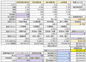 今回は、復刻天 長宗我部元親さんの模倣部隊でどのくらいの火力がでるのか、計算していきます。