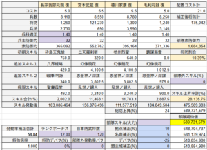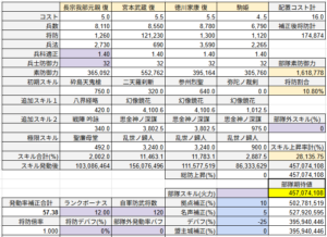 今回は復刻武蔵、復刻家康、山県の編成で計算します。