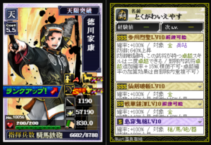 未鍛錬の状態です。元親、武蔵、家康は復刻前との特殊合成済(兵数+800)です。